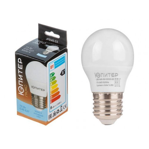 Лампа светодиодная G45 ШАР 7,5 Вт 170-240В E27 5000К ЮПИТЕР ЛЮКС