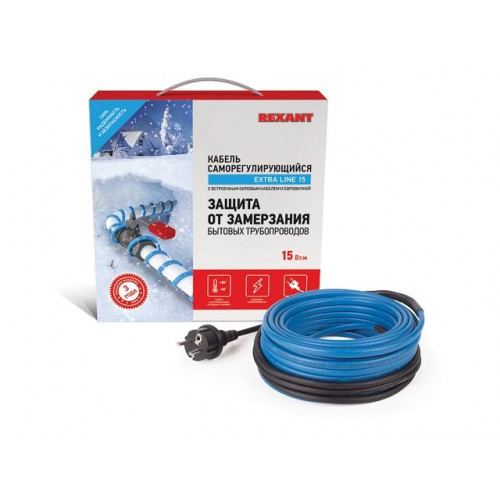 Греющий саморегулирующийся кабель на трубу 15MSR-PB 25M (25м/375Вт) REXANT