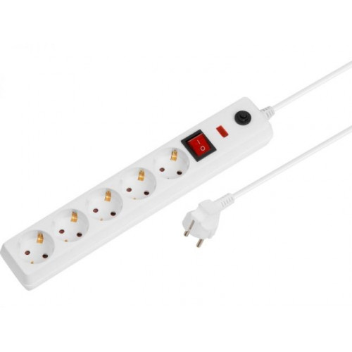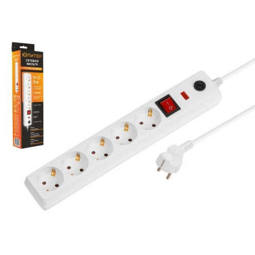 Фильтр сетевой 5м (5 роз., 2,2кВт, с/з, выкл, ПВС 3х0,75) белый Юпитер