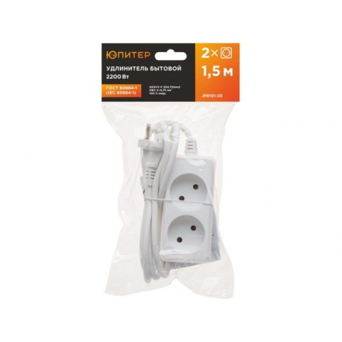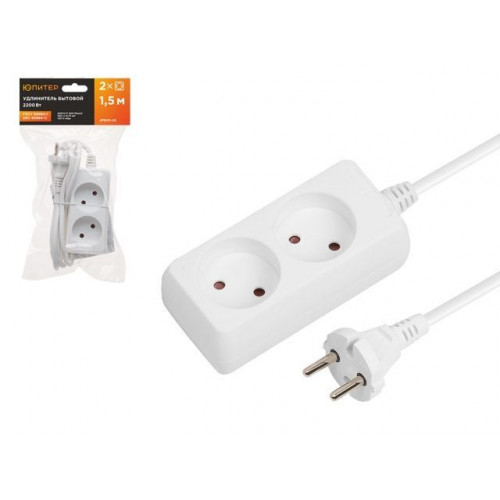Удлинитель 1,5м (2 роз., 2,2кВт, б/з, ПВС 2х0,75) Юпитер