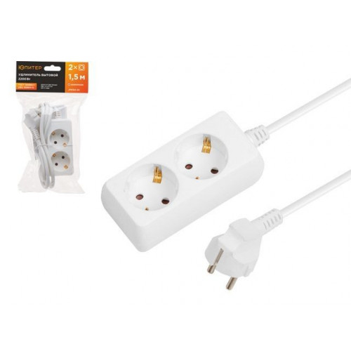 Удлинитель 1,5м (2 роз., 2,2кВт, с/з, ПВС 3х0,75) Юпитер