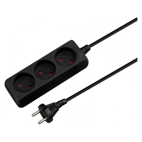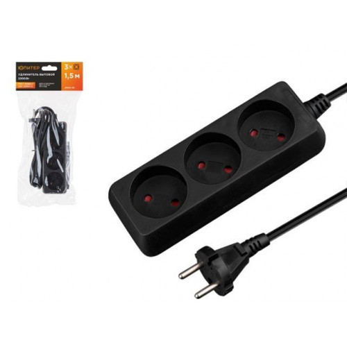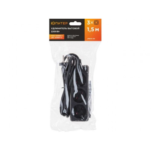 Удлинитель 1,5м (3 роз., 2,2кВт, б/з, ПВС 2х0,75) черный, Юпитер