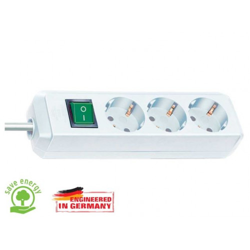 Удлинитель 1.5м (3 роз., 3.3кВт, с/з, выкл., ПВС) белый Brennenstuhl Eco-Line