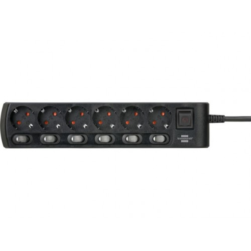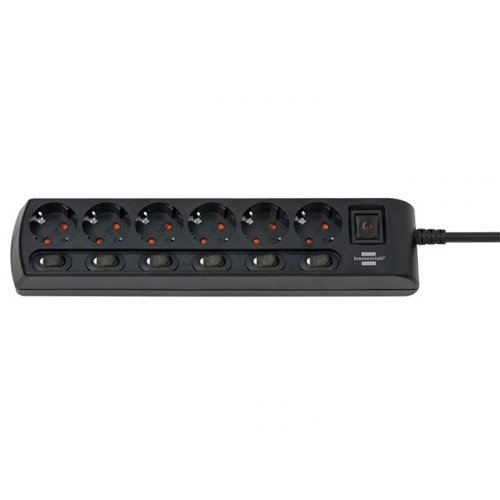 Удлинитель 2м (6 роз., 3.3кВт, с/з, 6+1 выкл., ПВС) черный Brennenstuhl Comfort-Line
