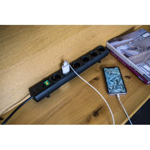 Comfort-Line надежный удлинитель 6 розеток, цвет черный, длина кабеля 2 метра, кабель H05VV-F 3G1,5