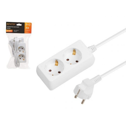 Удлинитель 3м (2 роз., 2,2кВт, с/з, ПВС 3х0,75) Юпитер