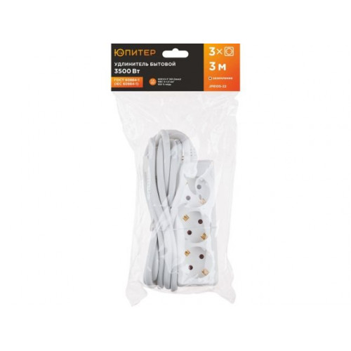 Удлинитель 3м (3 роз., 3,5кВт, с/з, ПВС 3х1,5) Юпитер