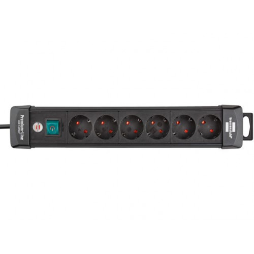 Удлинитель 3м (6 роз., 3.3кВт, с/з, выкл., ПВС) чер. Premium Line