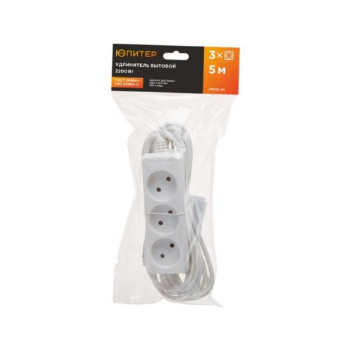 Удлинитель ЮПИТЕР изготовлен только из качественных материалов в соответствии с ГОСТ60884-1 и предназначен для подключения бытовых электрических приборов к электрической сети переменного тока внутри помещения.