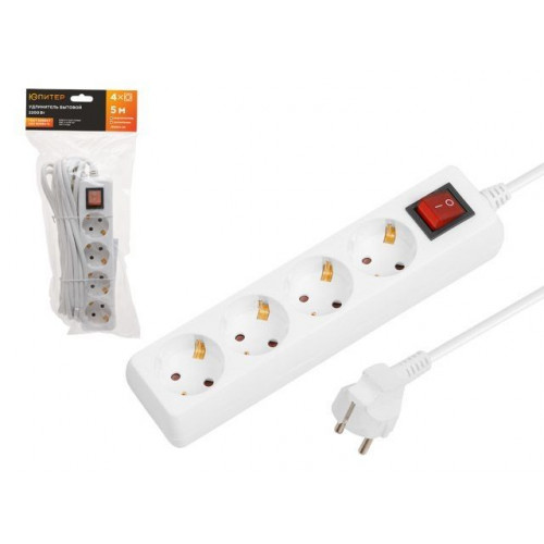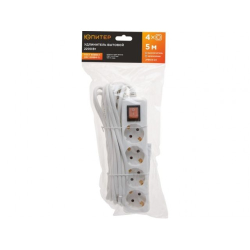 Удлинитель 5м (4 роз., 2,2кВт, с/з, выкл, ПВС 3х0,75) Юпитер