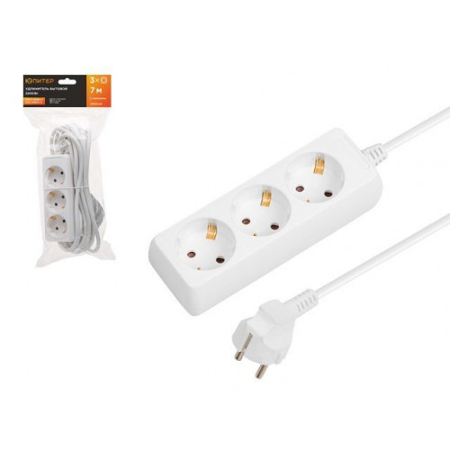 Удлинитель 7м (3 роз., 2,2кВт, с/з, ПВС 3х1) Юпитер