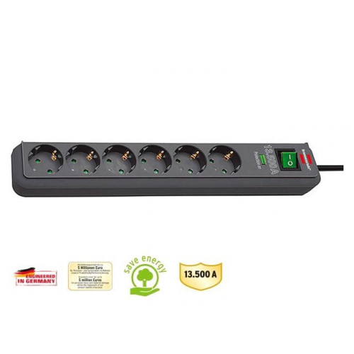 Удлинитель / фильтр сетев. 1.5м (6 роз., 3.3кВт, с/з, выкл., ПВС) Brennenstuhl Eco-Line