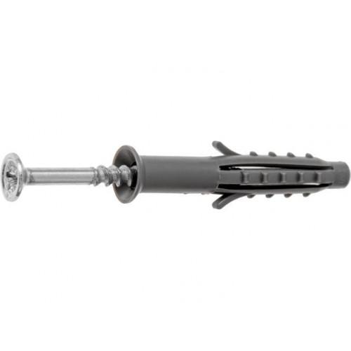 Особенности: для установки необходимо предварительно просверлить отверстие. Прочность крепежа достигается расклиниванием дюбеля в отверстии гвоздем в момент удара молотком. С помощью крестообразного шлица на головке гвоздя можно легко ослабить или усилить крепеж, демонтировать его. Более надежное крепление благодаря большой площади соприкосновения с прикрепляемой деталью. Дополнительные усы исключают проворачиваемость при установке.