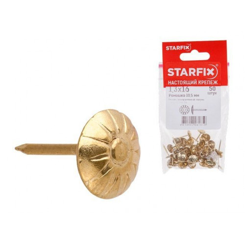 Гвозди декоративные Ромашка 10.5 мм 1.3х16 мм латунь (50 шт в зип-локе) STARFIX