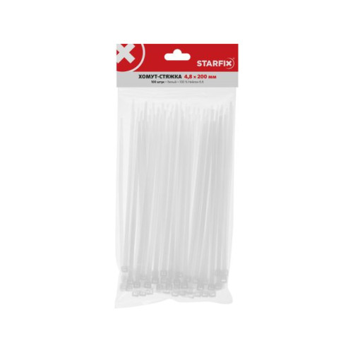 Хомут-стяжка 4.8х200 мм белый (100 шт в уп.) STARFIX