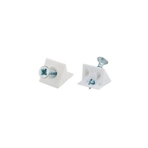 Пластиковый фиксатор с саморезом используется для крепления задней стенки из ДВП, тем самым предотвращаяя ее прогиб. Предустановленный в уголок саморез не потеряется на производстве.
