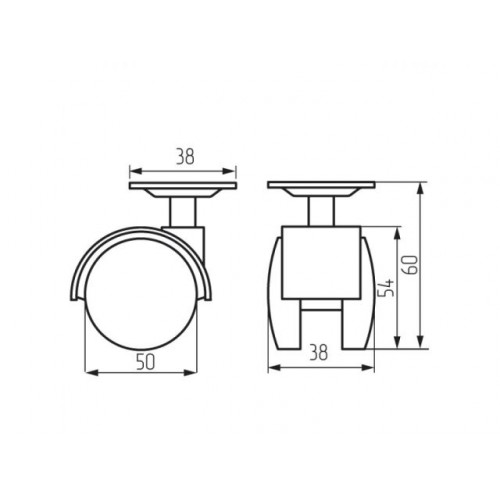 Мебельное колесо диаметром 50 мм, поворотное, на площадке. Предназначено для журнальных столиков, выкатных тумб под ТВ или другую аппаратуру. Площадка крепится саморезами.
