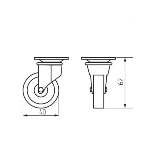 Мебельное колесо диаметром 40 мм, поворотное, на площадке. Имеет цельнометаллический корпус и подшипник.