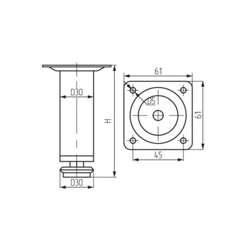 Опора мебельная круглая d30х100 мм, хром STARFIX
