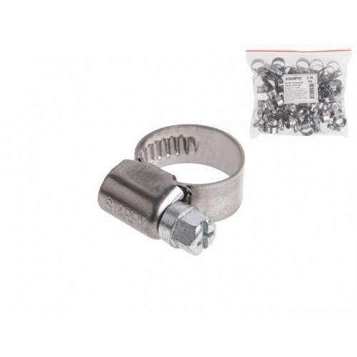 Хомут червячный 16-27 мм, нерж.сталь (W2) (50 шт в пакете) STARFIX