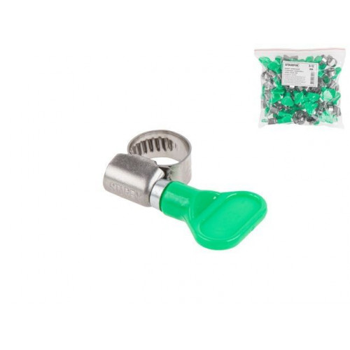Хомут червячный с ключом "бабочка" 8-12 мм, нерж.сталь (W2) (50 шт в пакете) STARFIX