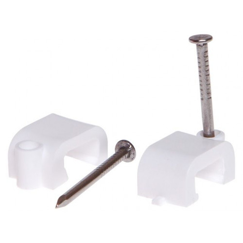 Скоба для крепления прямоугольного кабеля 4 мм белая, с гвоздем (50 шт в зип-локе) STARFIX