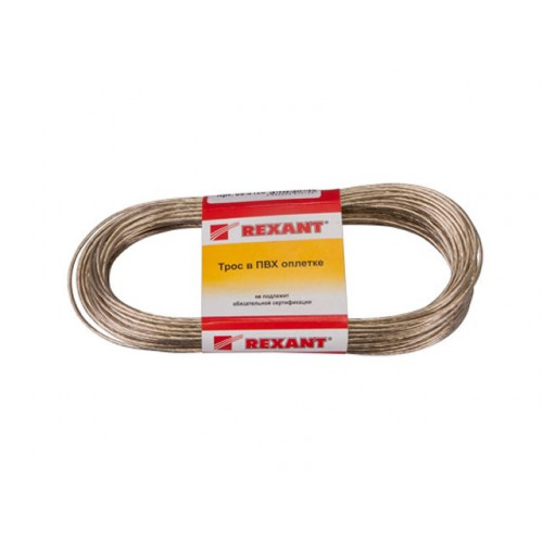 Трос стальной в ПВХ оплетке d=2,0 мм, прозрачный (моток 20 м) REXANT