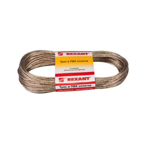 Трос стальной в ПВХ оплетке d=2,5 мм, прозрачный ( моток 20 м) REXANT