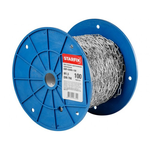 Цепь сварная короткозвенная, оцинк. М1,5 DIN 766 (бухта 100 м) STARFIX