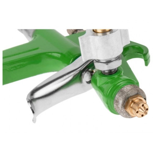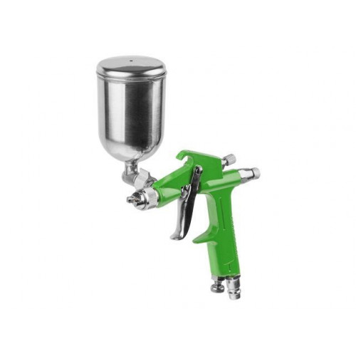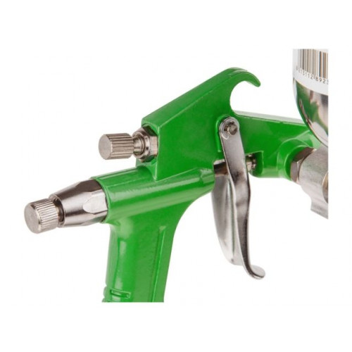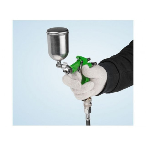Компактный краскораспылитель типа HVLP с поворотным металлическим бачком разработан для работ в труднодоступных местах. За счет изменения положения бачка материал можно наносить на поверхности в разных плоскостях.