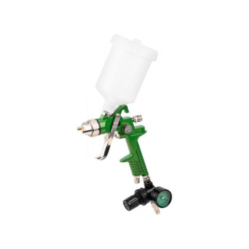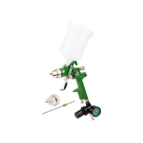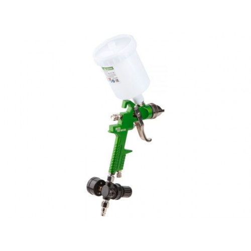Краскораспылитель HVLP 2-в-1 для нанесения грунта и эмали. В комплекте идет 2 сопла - 1.4 и 1.7 мм. Регулятор с манометром в комплекте позволяет настроить работу краскораспылителя максимально точно.