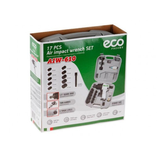 Пневмогайковерт 1/2" ECO AIW-610 с лубрикатором и головками