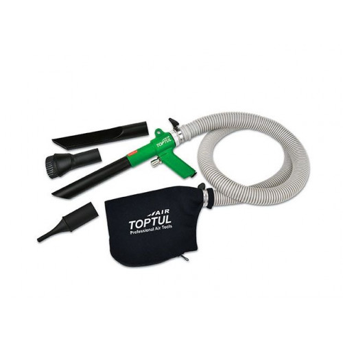Пневмопистолет всасывающий с насадками предназначен для очистки различных поверхностей от пыли как методом ее выдувания, так и методом ее всасывания по принципу пылесоса. Пневмопистолет оснащен гофрированным шлангом, мешком-пылесборником и четырьмя сменными насадками: круглая, насадка-щетка, плоская и тонкая трубка. Рекомендуется для профессионального использования.