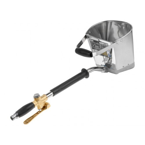 Хоппер-ковш предназначен для нанесения строительных смесей (штукатурки, бетона, глины) на поверхность бетонных или железобетонных конструкций под давлением сжатого воздуха, что дает плотное взаимодействие наносимого состава с поверхностью, заполнение трещин, раковин и пор, а также значительно ускоряет нанесение смесей по сравнению с ручным способом.