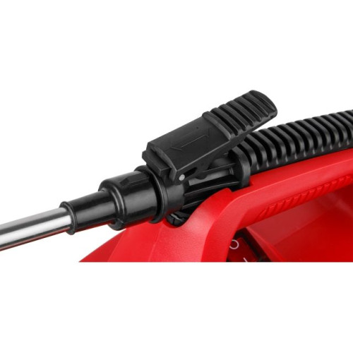 Давление создается одним нажатием кнопки. Благодаря широкой горловине основной бак легко заполнить жидкостью.