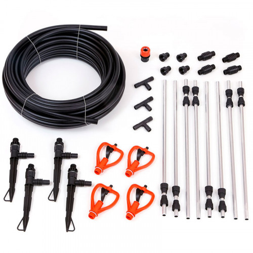 Комплект предназначен для организации орошения участка площадью до 100 м. кв. Это прекрасное решение для полива посадок картофеля, а также газонов и клумб. В комплект входит всё необходимое для подключения системы к водопроводу и организации полива: шланг, фитинги, распылители. Рабочее давление от 1,5 атм. до 3 атм.