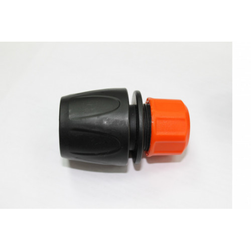 Для закрепления коннектора на шланг используется цанговое соединение - самое надёжное соединение, исключается подкапывание в месте соединения даже при сильном напоре. Шланг надевается на внутренний штуцер, при затягивании внешней гайки "лепестки" цанги смыкаются, и шланг диаметром 1/2 надёжно фиксируется.