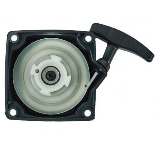 Стартер ручной для мотокосы представляет собой механизм, предназначенный для запуска двигателя мотокосы. Он состоит из корпуса, шнура, ручки и системы зацепов, которые взаимодействуют с маховиком двигателя. При вытягивании шнура зацепы входят в зацепление с маховиком, что позволяет провернуть коленчатый вал и запустить двигатель. Такой стартер обычно используется в бензиновых мотокосах и обеспечивает надежный запуск при правильной эксплуатации.