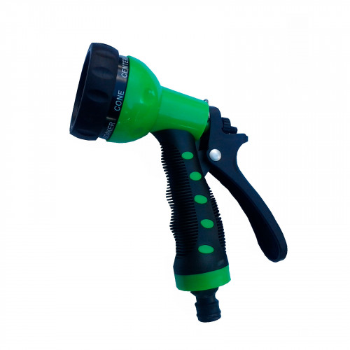 Имеет 7 режимов работы. Напор струи регулируется. Для длительного полива инструмент оснащен специальным фиксатором. Ручка с противоскользящим покрытием имеет углубления для пальцев.