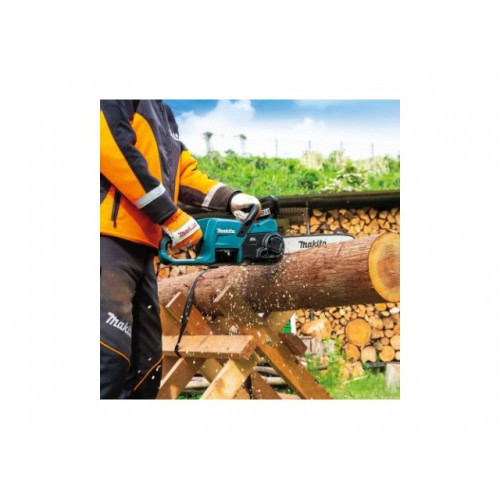 легкая и компактная аккумуляторная цепная пила, обладающая высокоэффективным бесщеточным двигателем с редуктором и низким уровнем шума для максимально комфортной работы. Пригодится как профессиональным садоводам, так и бытовым пользователям, которым компактность и легкость инструмента для продолжительного времени важнее его мощности. Хотя мощности данной пилы достаточно, чтобы свободно резать бревна диаметром до 25-30 см. За счет редуктора скорость цепи уменьшена до 7.7 мс, но крутящий момент значительно увеличен. Пила работает от одного универсального LXT аккумулятора с напряжением 18 В.