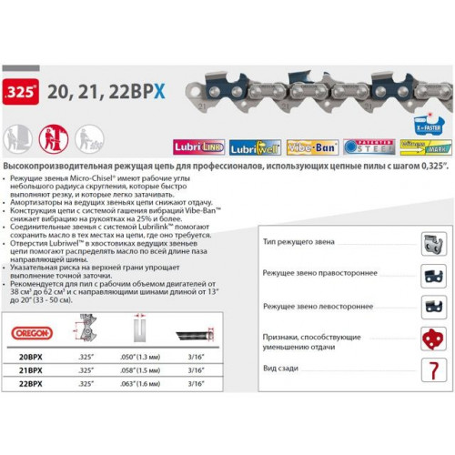 Цепь 37 см 15" 0.325" 1.6 мм 62 зв. 22BP (в блистере) OREGON