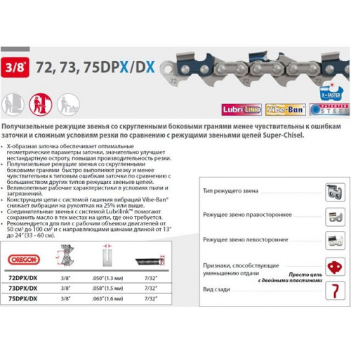 Цепь 40 см 16" 3/8" 1.6 мм 60 зв. 75DPX (в блистере) OREGON