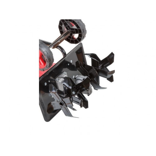 Высокое качество обработки достигается благодаря мощному двигателю, а также большой ширине и глубине культивации. Наличие складной рукоятки способствует компактности при хранении агрегата. Колеса облегчают транспортировку. Для удобства использования инструмента предусмотрен держатель кабеля. Защитный кожух предотвращают попадание земли на оператора, а также загрязнение корпуса прибора. Инструмент изготовлен из ударопрочного пластика PA6GF30.