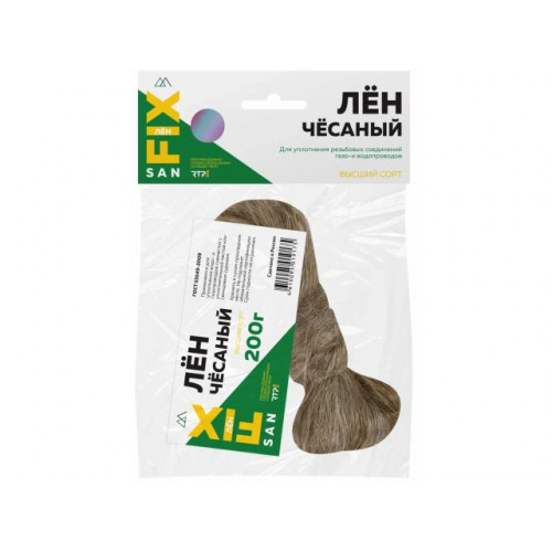 Сантехнический лен SANFIX – натуральный, очищенный продукт, получаемый из однородного по структуре, тонкого, чесаного льна. Благодаря качественной очистке материал не дает отходов при использовании, не закручивается и не сбивается.