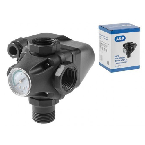 Реле давления состоит из корпуса, внутри которого расположена нормально замкнутая контактная группа, управляемая мембраной, соединенной с напорной магистралью. Реле включает насос, когда давление в системе падает ниже установленного значения и выключает насос, когда давление в системе достигает установленного значения выключения.