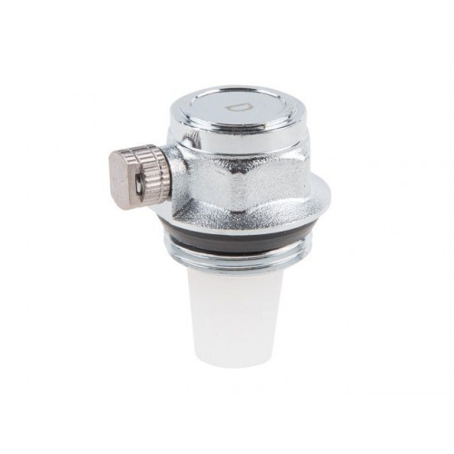 Заглушка радиаторная со встроенным автоматическим воздухоотводчиком автоматически отводит все газы, скопившиеся в радиаторе. Внутри находится двигающийся поплавок, который опускается вниз при отсутствии воздуха, и поднимается, если в радиаторе присутствует воздух.
