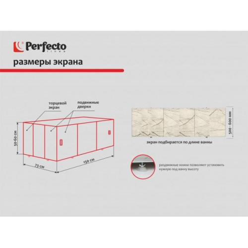 Экран под ванну 3D 1,5 м, арктика, PERFECTO LINEA
