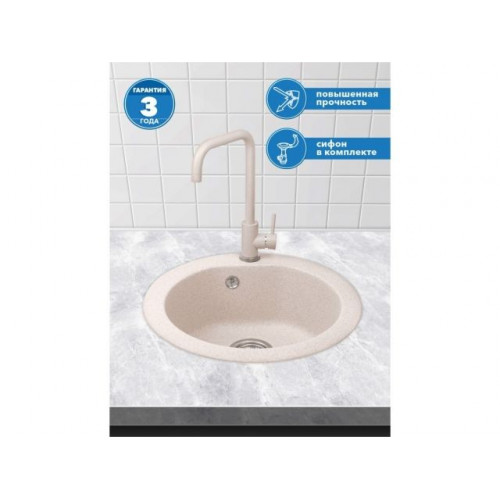 Мойка кухонная из искусственного камня GOLD песочный 505х505 мм, AV Engineering