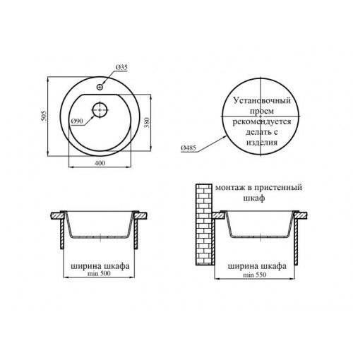 Размер мойки: 505х505 мм,