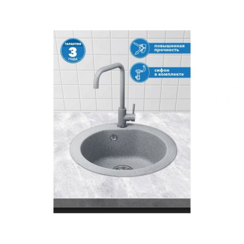 Мойка кухонная из искусственного камня GOLD серый 505х505 мм, AV Engineering